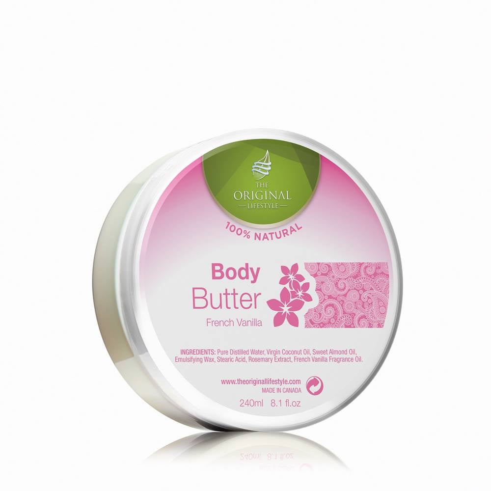 Infused with an aromatic blend of french vanilla and pampering organic cocoa butter, this body butter is perfect for dull and dried skin. An all-natural product, paraben-free and no artificial preservatives.